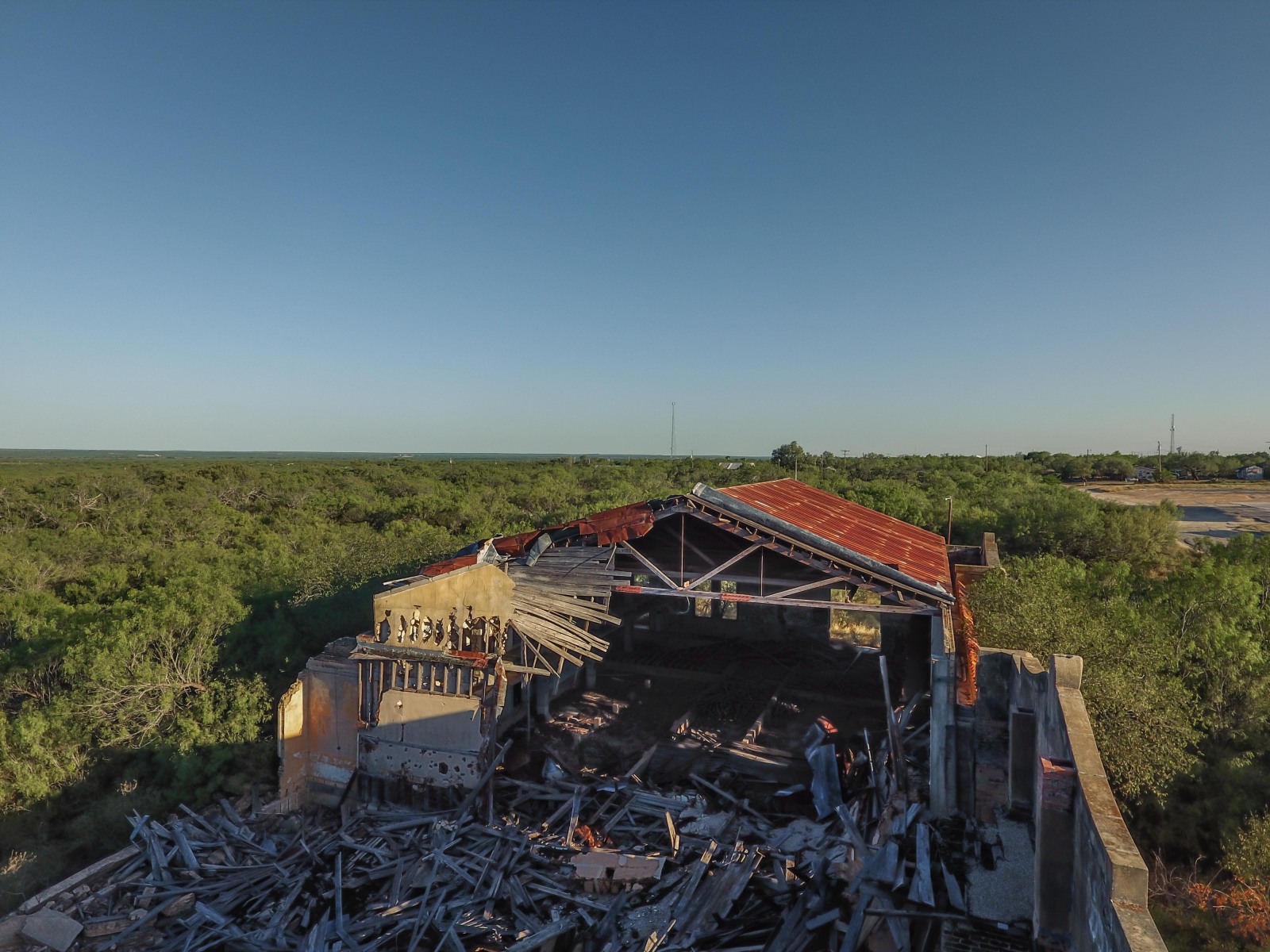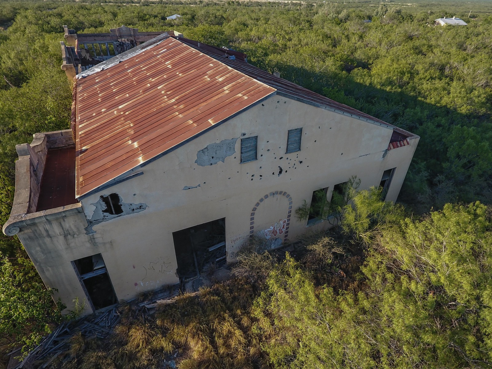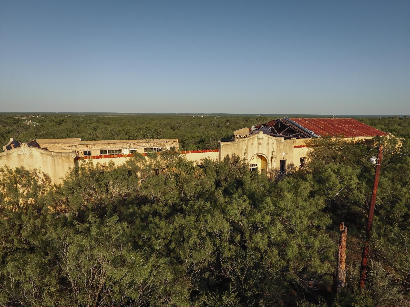 Catarina is still a ranching community with a gas station and about 80 residents. One of the longest standing remains of its boom was the hotel, which was vacant for several years, reopened a few times, and burned down after being struck by lightening in 2020. The old high school is decaying inside a fortress of thick trees.