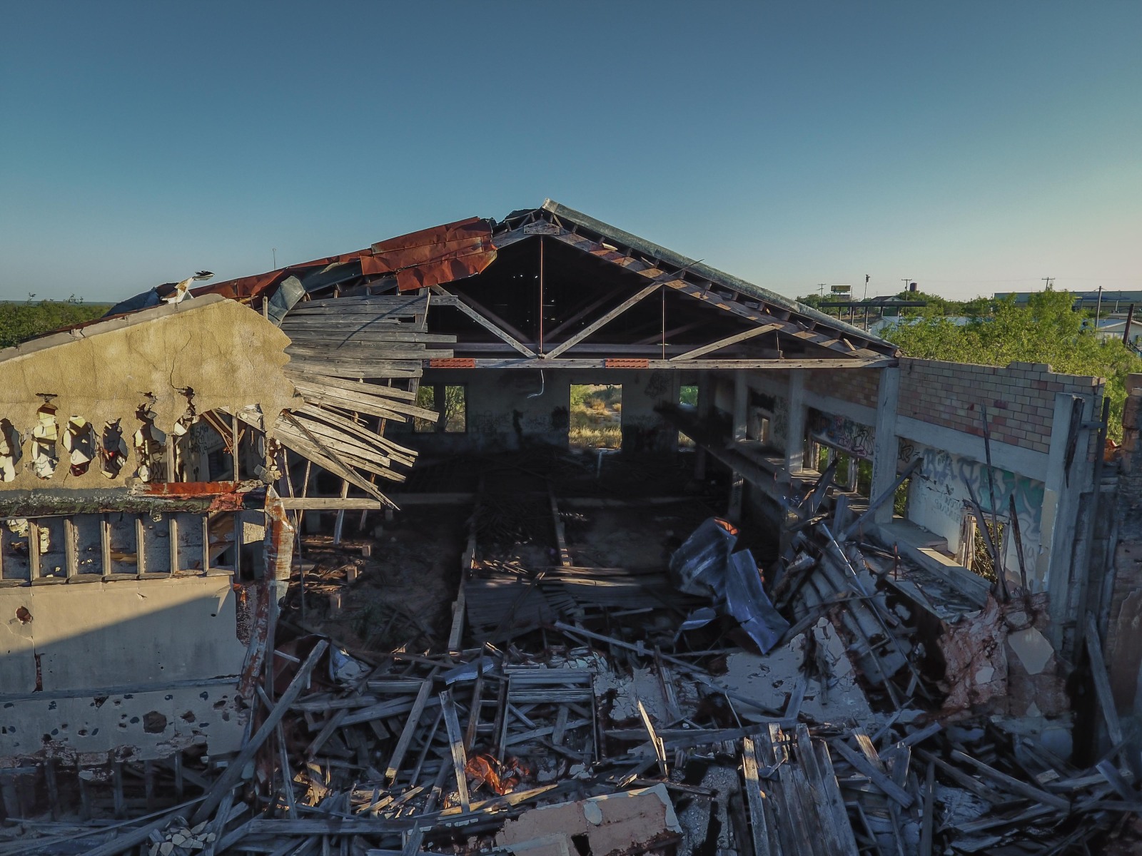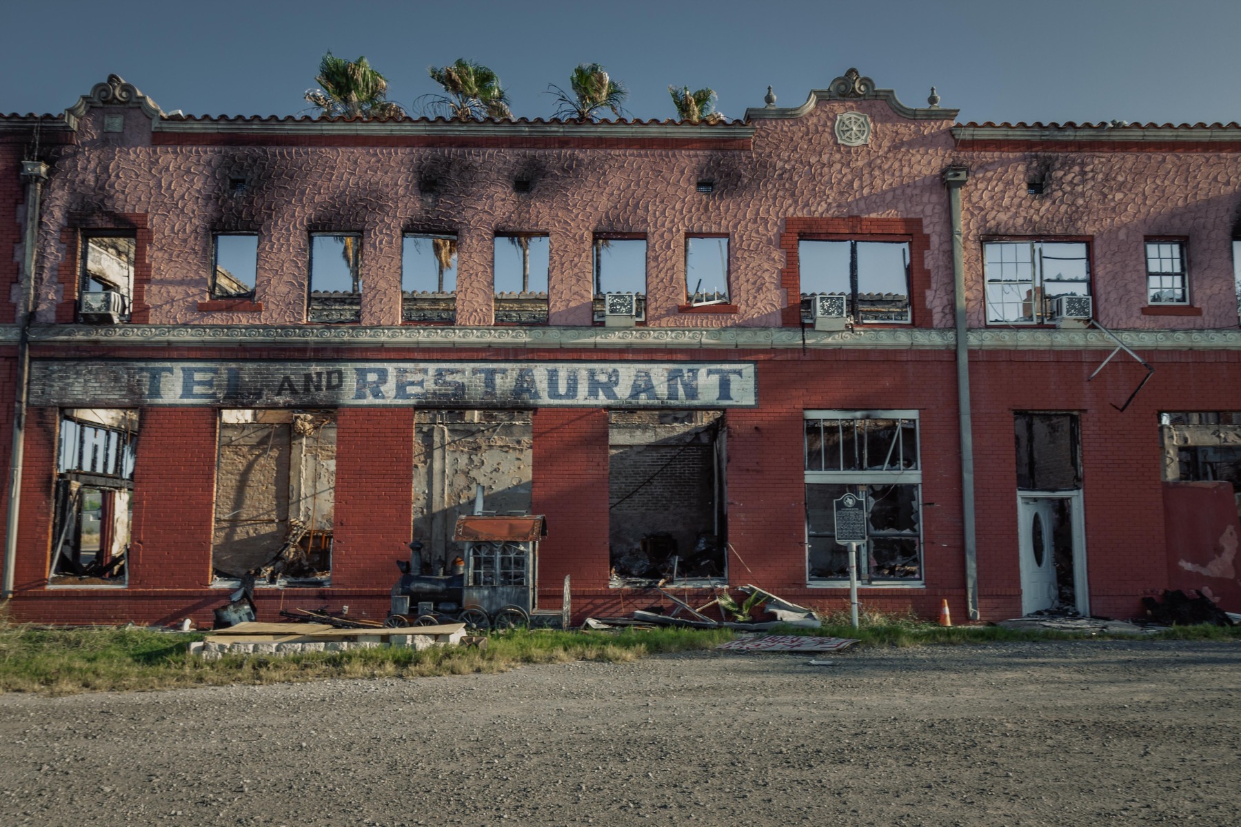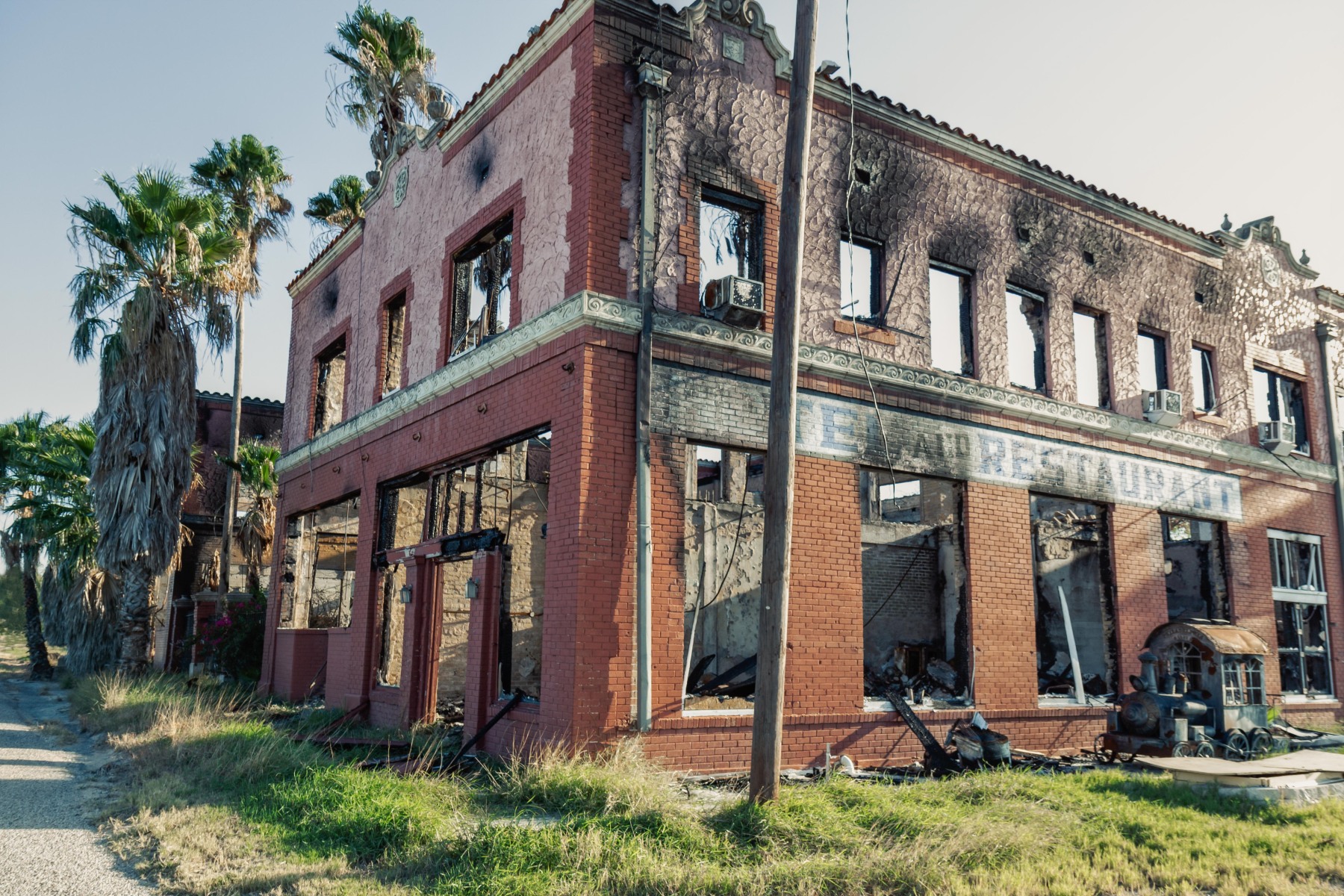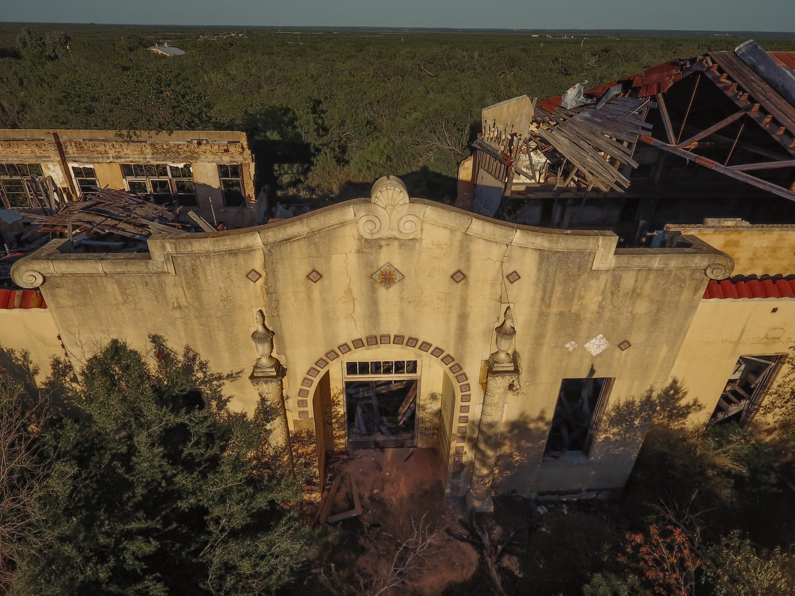 Catarina is still a ranching community with a gas station and about 80 residents. One of the longest standing remains of its boom was the hotel, which was vacant for several years, reopened a few times, and burned down after being struck by lightening in 2020. The old high school is decaying inside a fortress of thick trees.