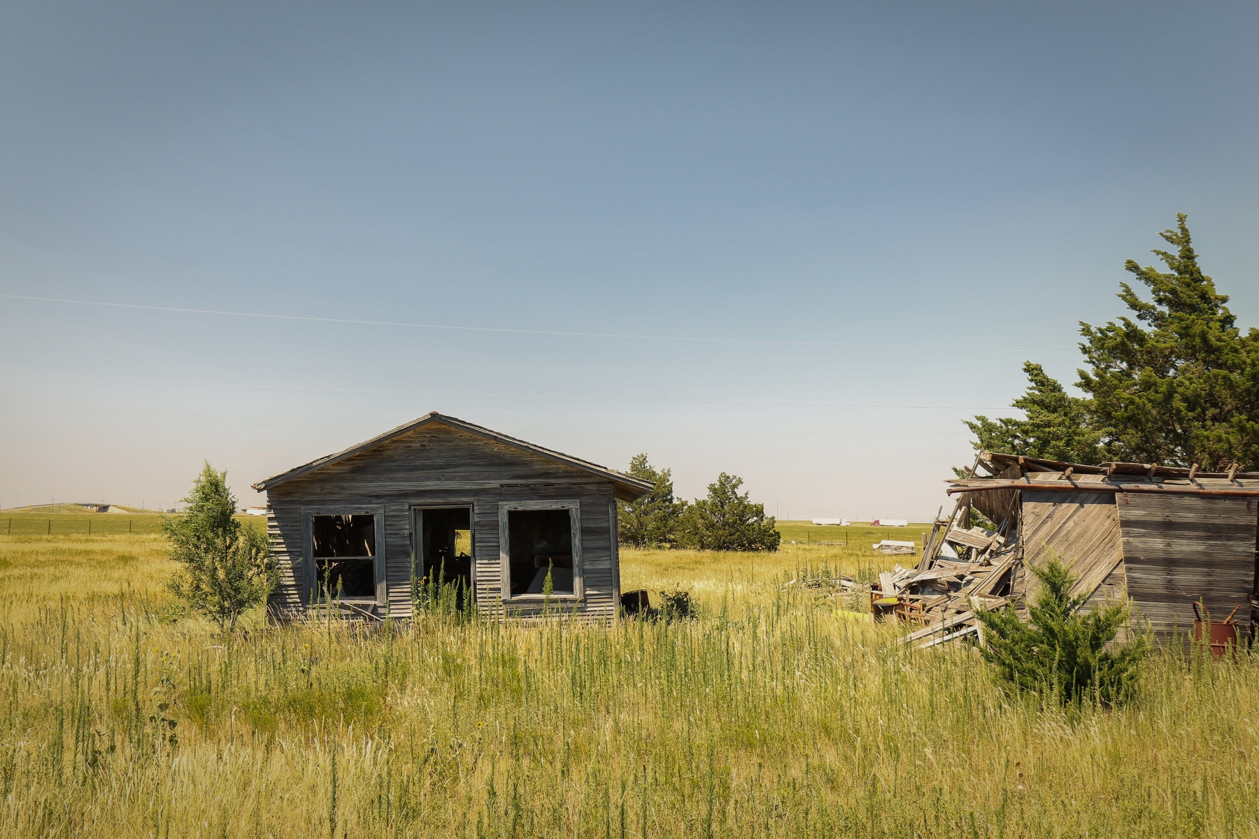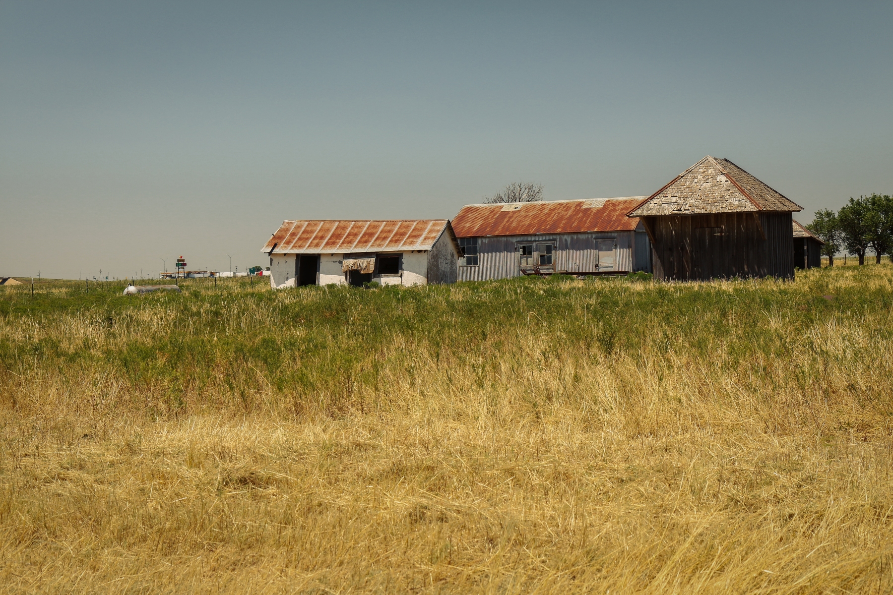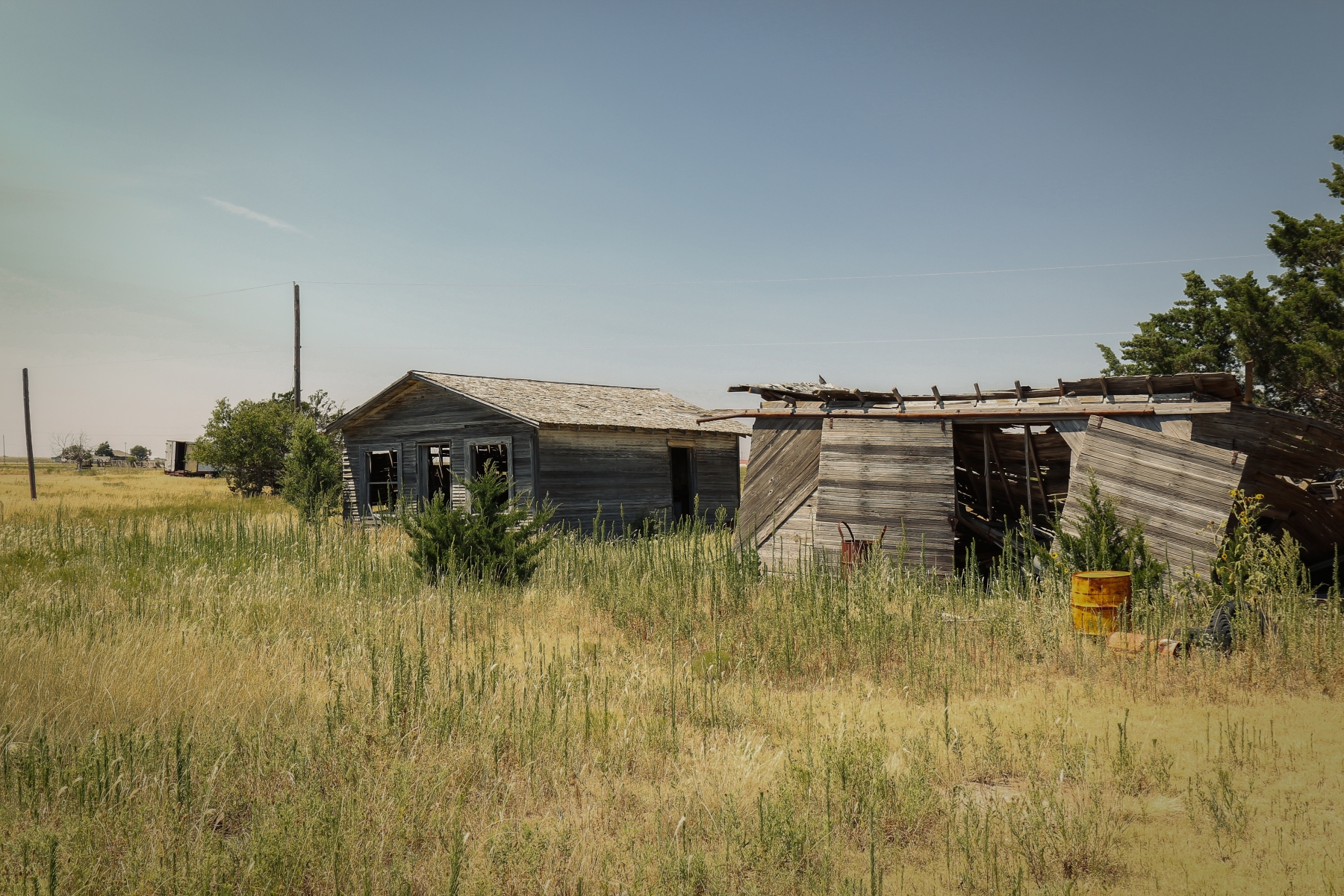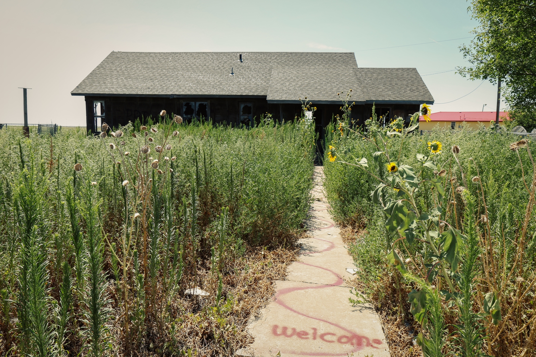 The Longhorn and Bug Ranches are now badly vandalized and the Beetles are covered with as much spray paint as their cousin to the West. Additional remains of Conway, a mile south, include a boarded up school (built in 1930), several small structures in conditions varying from barely holding on to piles of wood, residents of 3 newer houses, and 2 sets of grain elevators built next to an abandoned railway.