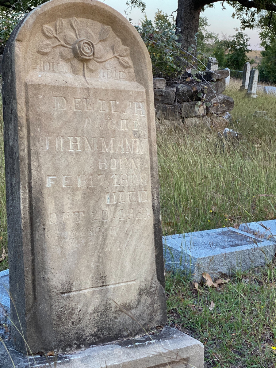 “Testimony to the danger of frontier life is the grave of Miss Sally Bowman, who died in 1868. She was shot after a wild chase by Indians who surprised her as she tended her father’s herd of fine horses. At her grave is a monument erected by the neighborhood.”