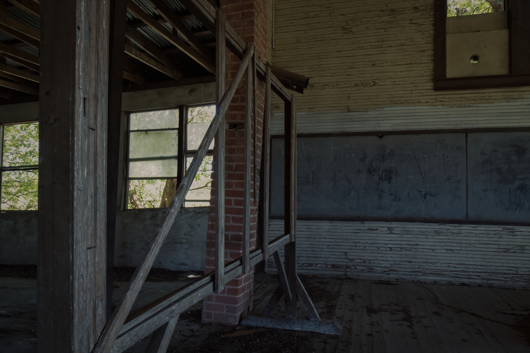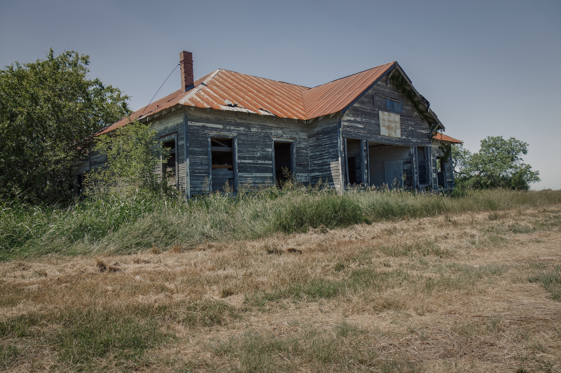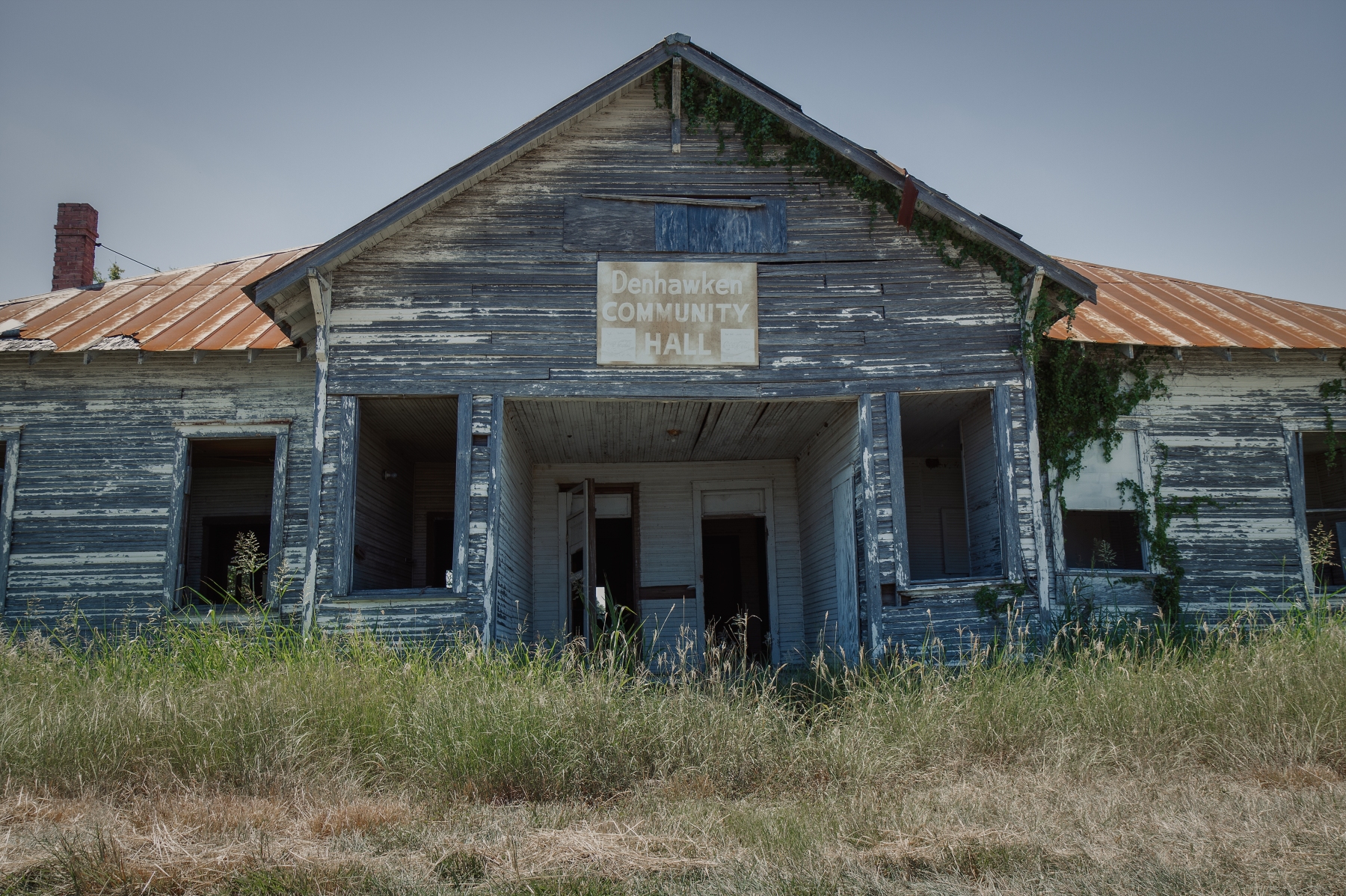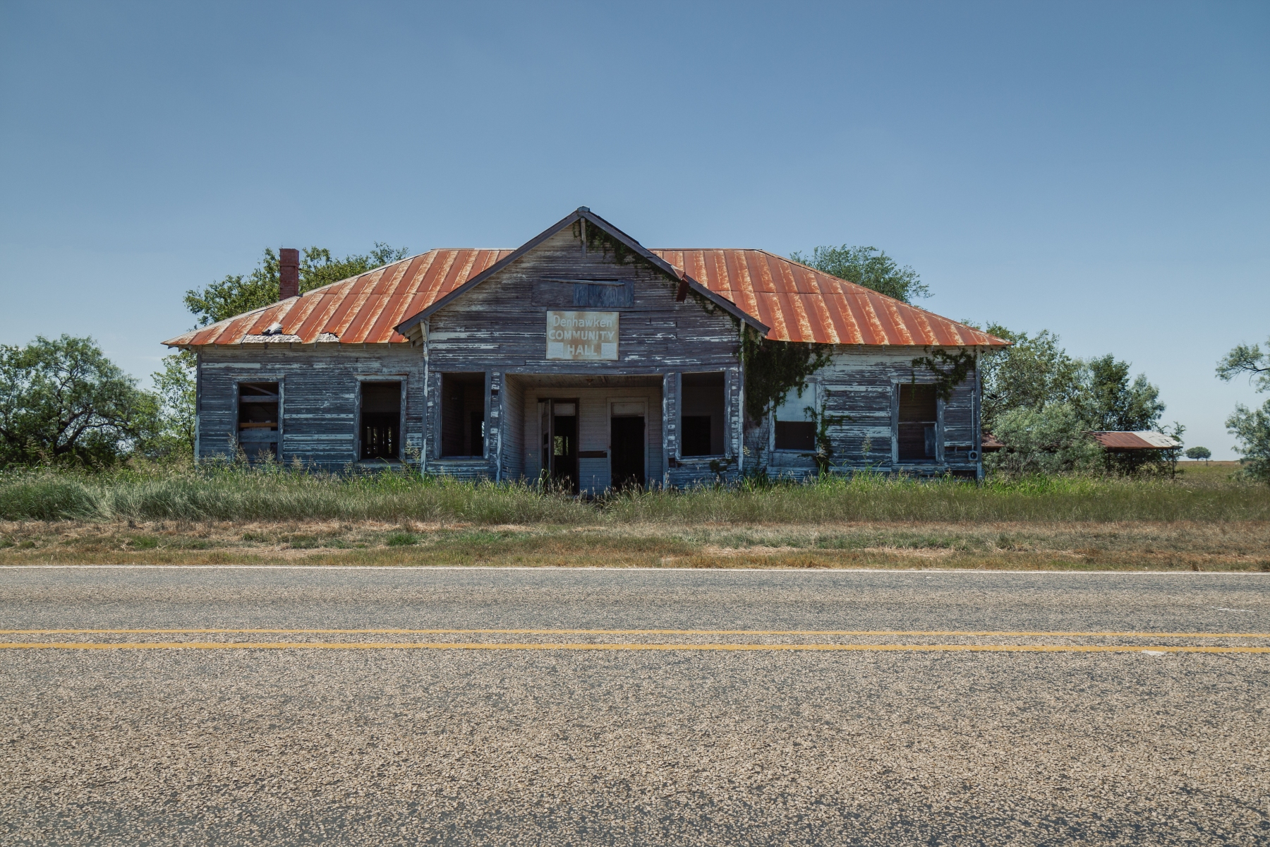 Denhawken was settled in the late 1890’s. The area still has residents but all that remain of their original town is a church, cemetery, and school. The original school was later used as a community center and now ages alone at the town’s only intersection.