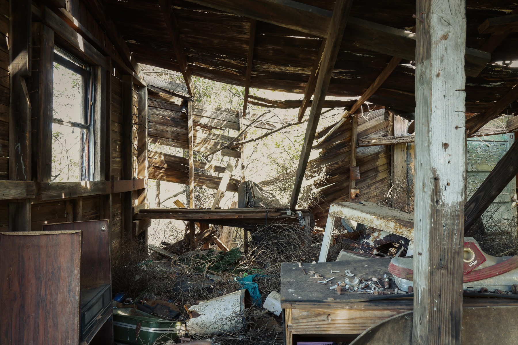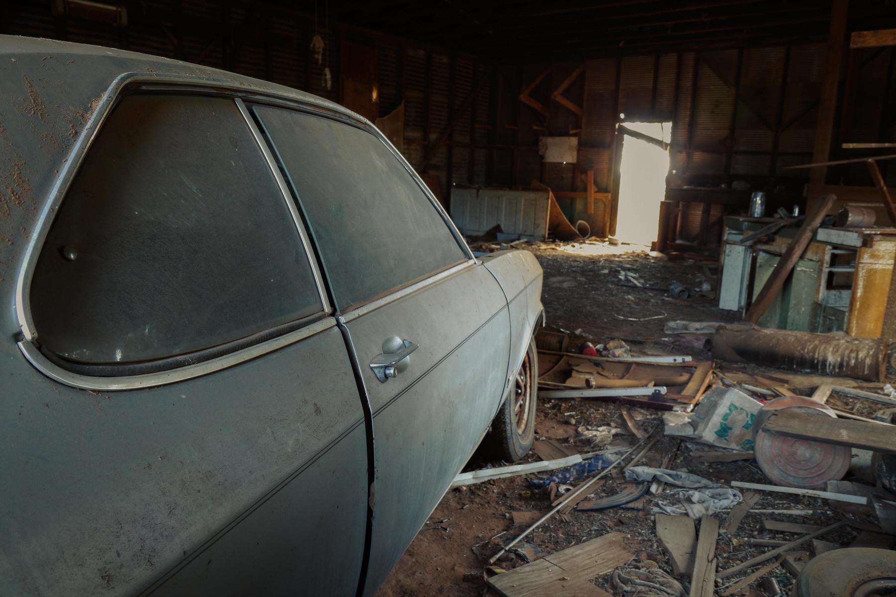 History of Dozier dates back to about 1900 with a population of 100 by 1940. Most of its buildings are situated around a single intersection and haven’t been used in decades. A partially open garage provides shelter to 1973 or 1974 Opel Manta Luxus (precursor to Lexus). Bullet holes give the appearance of a hidden getaway car but most likely is the result of potshots from someone’s idea of fun.
