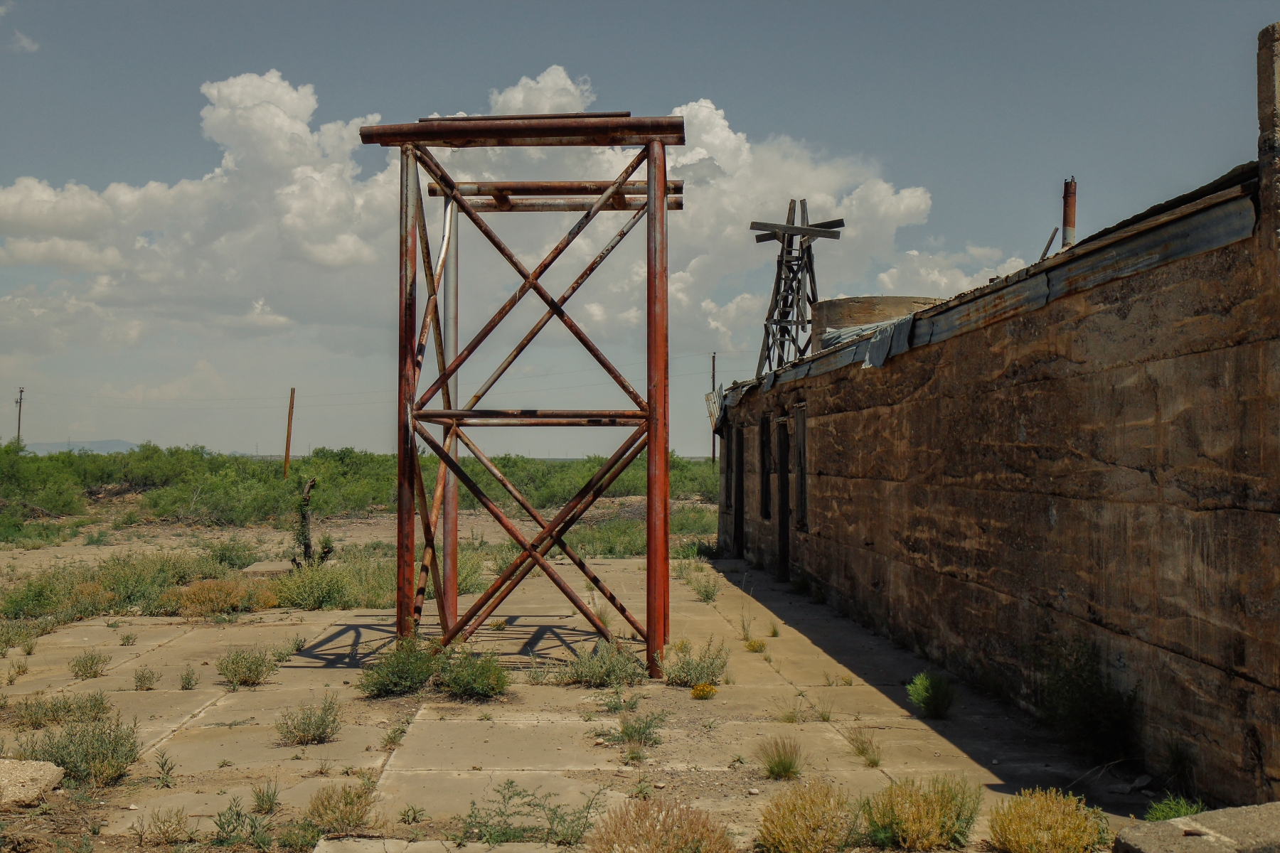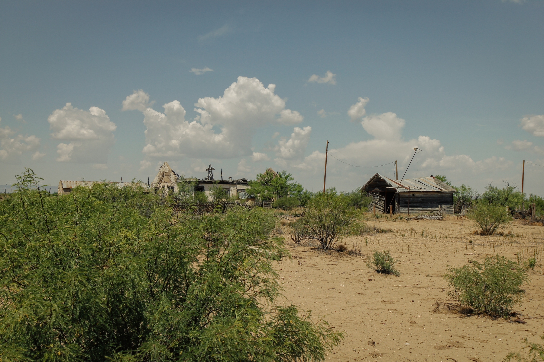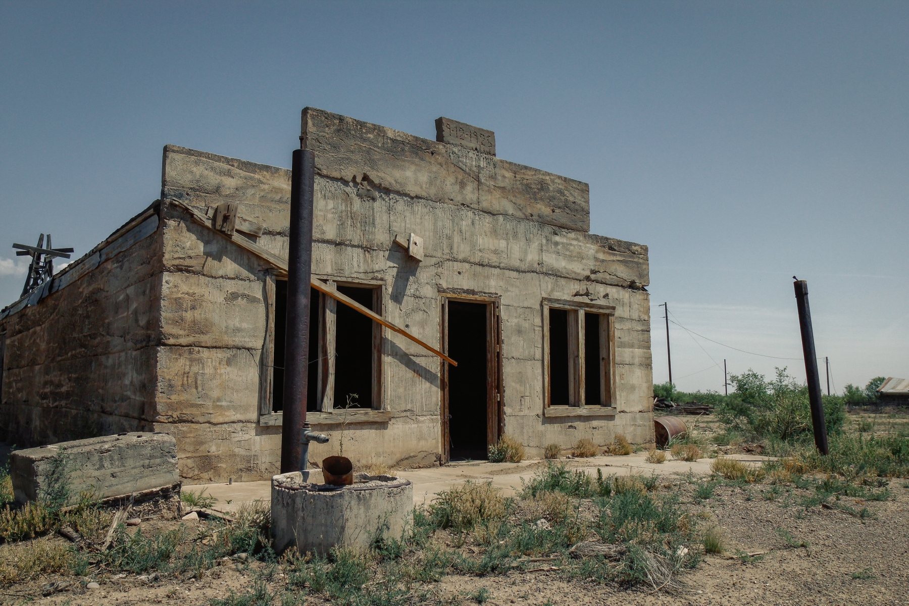 Named for a company official from the Kansas City, Mexico, and Orient Railway, Hovey was established as a rail stop in 1913 (Justice). The settlement was always small, with approximately 25 residents through the late-1940’s. There was a general store, post office, school, and several stock and shipping buildings, in additional to homes for its residents. A new school was constructed after the original burned down in 1916, which taught seven grades until closing in 1938. It was used as a community center and church for some time and eventually relocated to Fort Stockton for preservation in 1987.